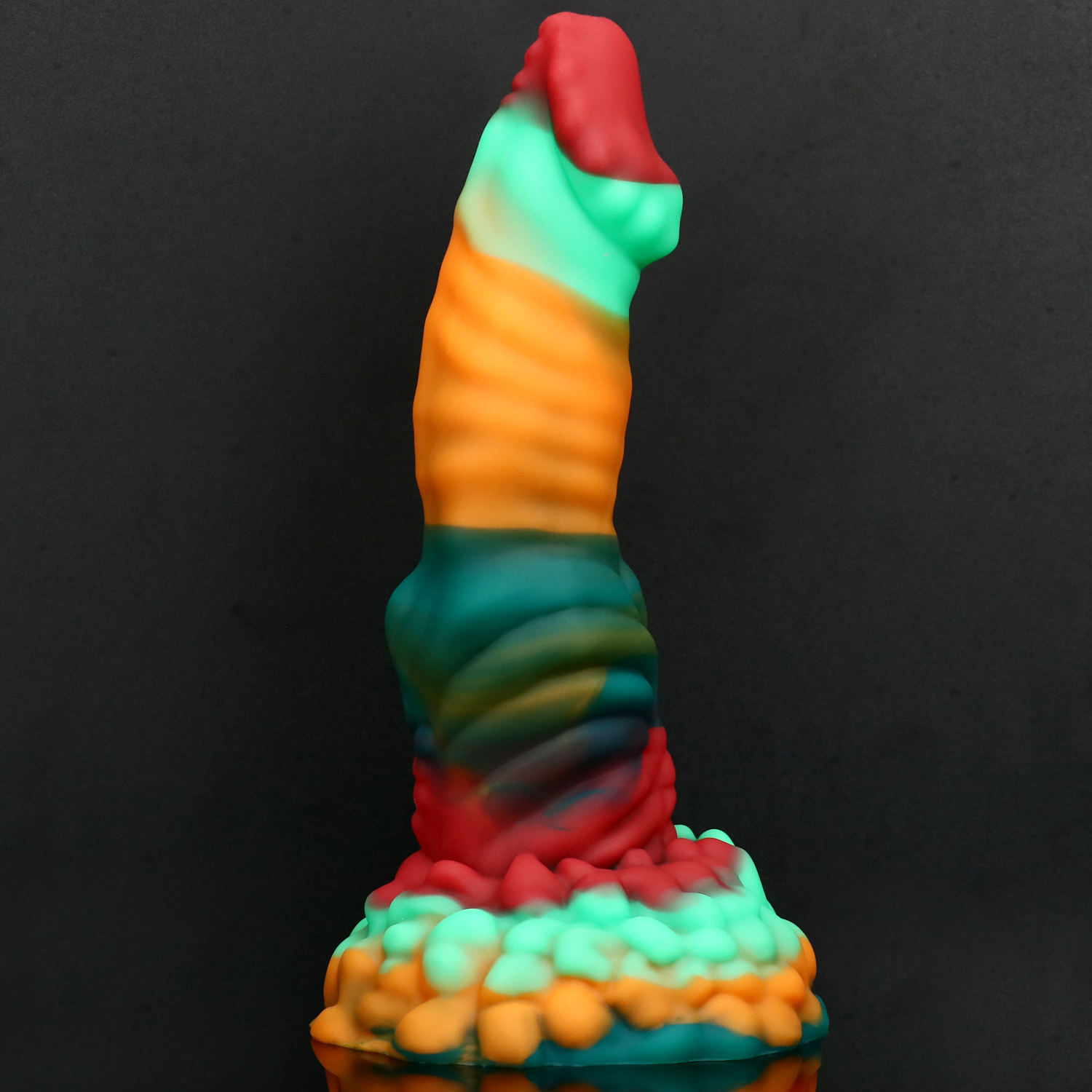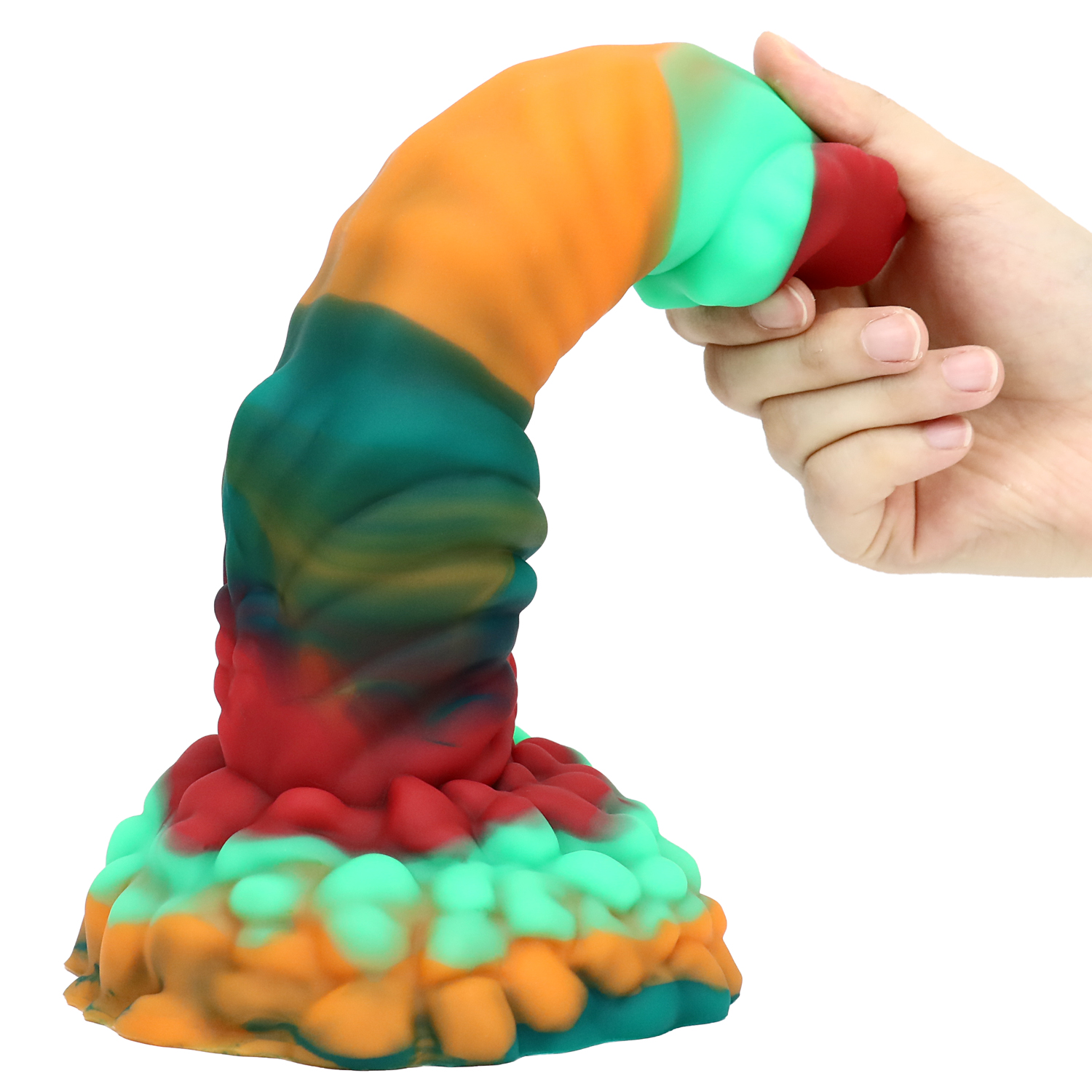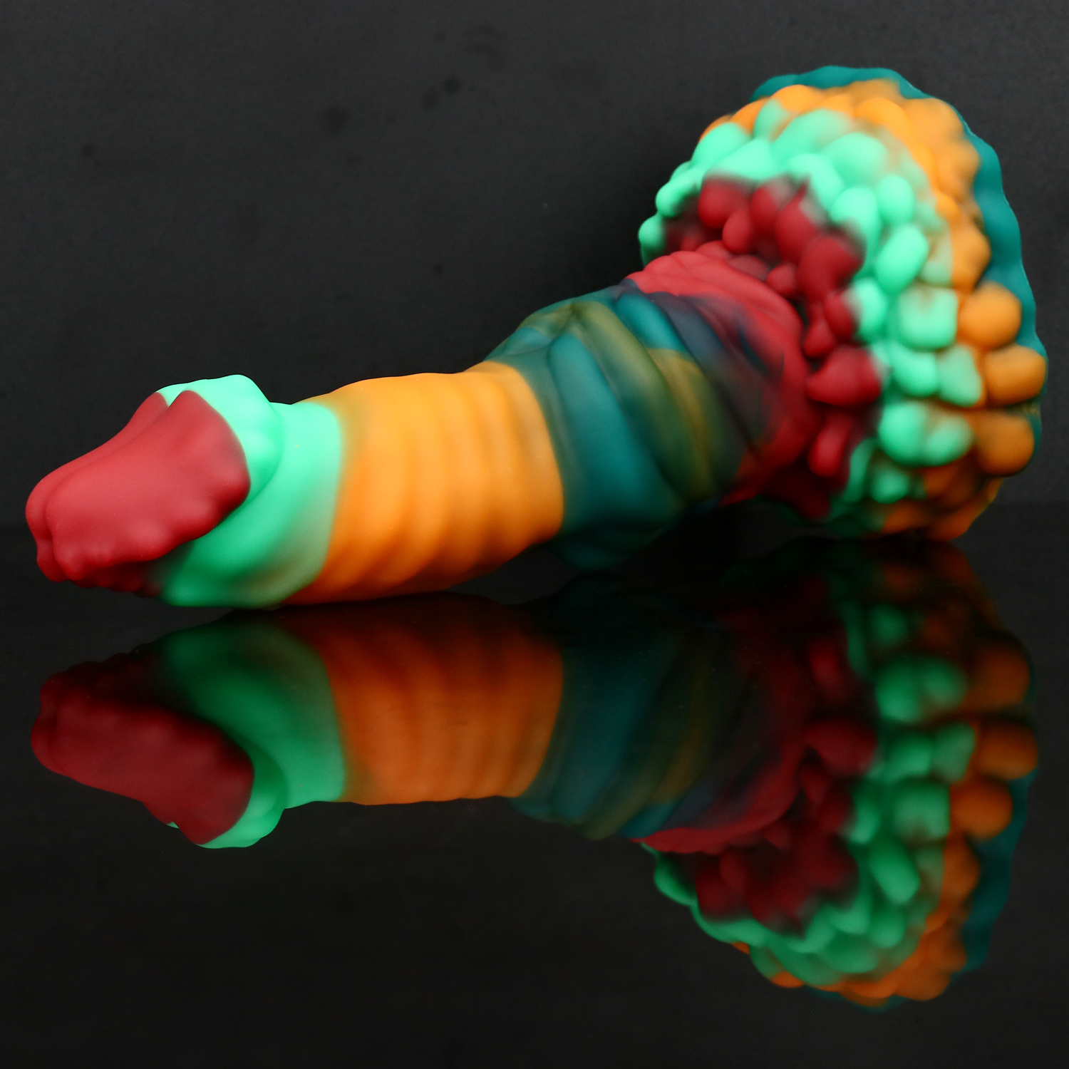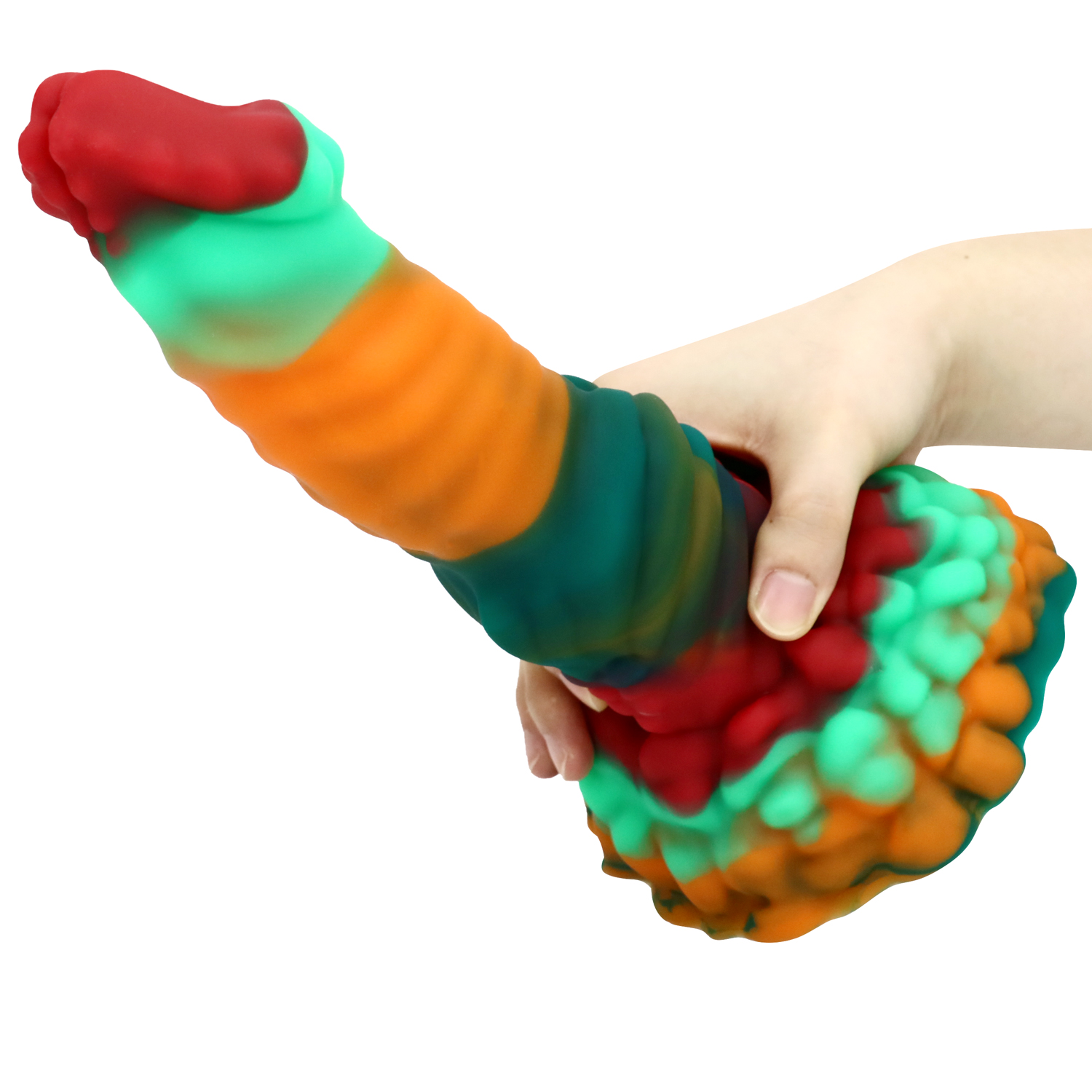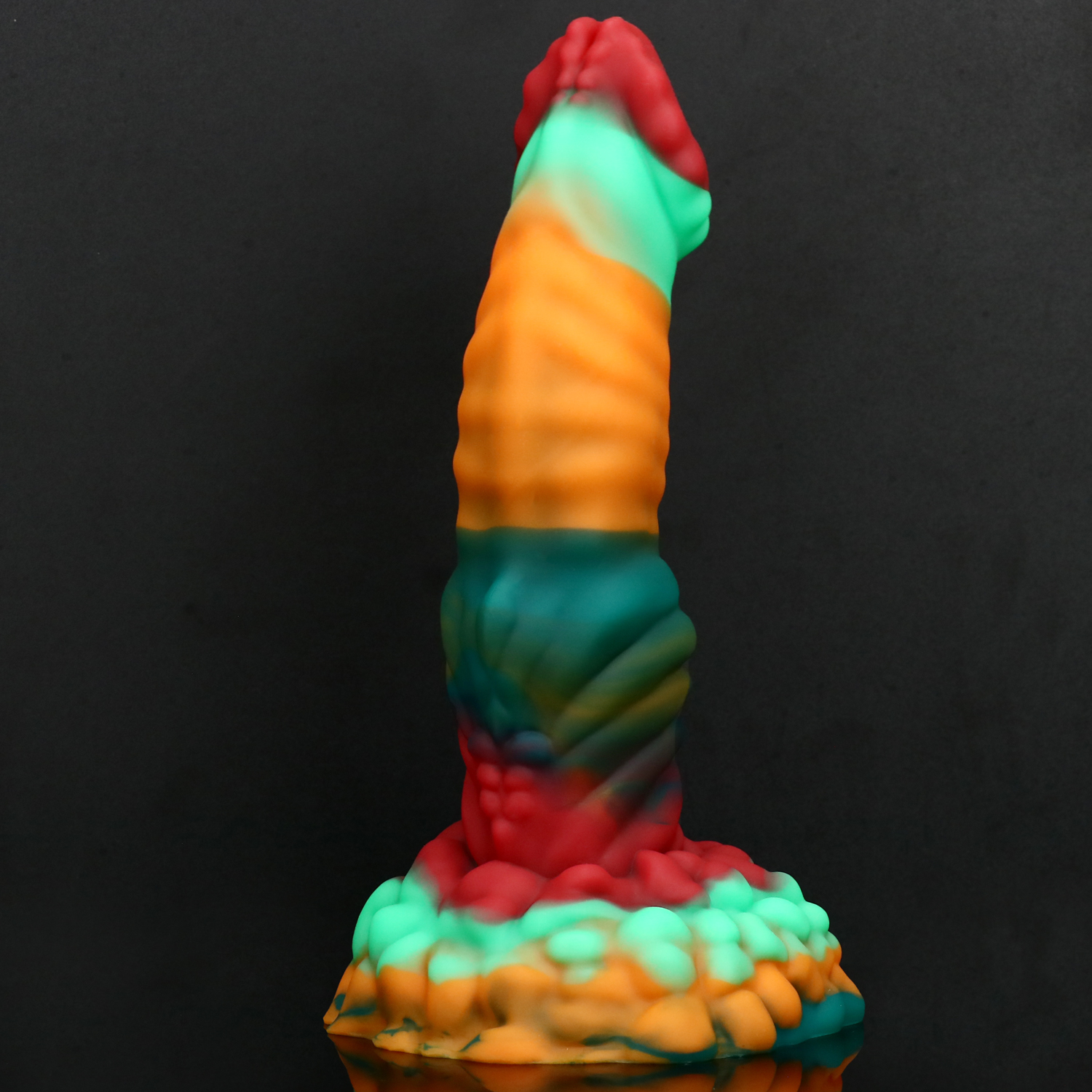 • Extra-large rainbow silicone dildo with an oversized suction base